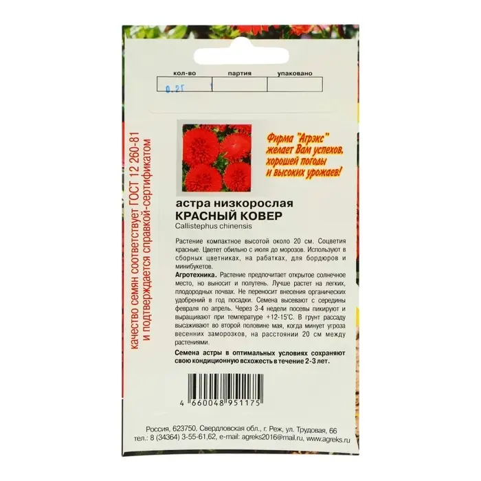 Семена Цветов Астра низкорослая Красный ковер , 0,2 г