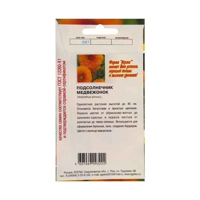 Семена Цветов Подсолнечник Медвежонок, 10 шт