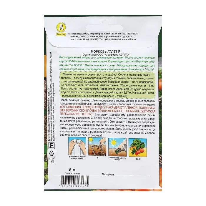 Семена Морковь "Атлет", F1, лента 8 м