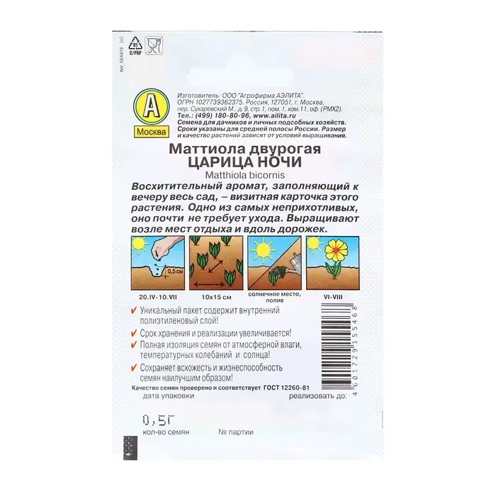 Семена Цветов Маттиола "Царица ночи", 0,5 г