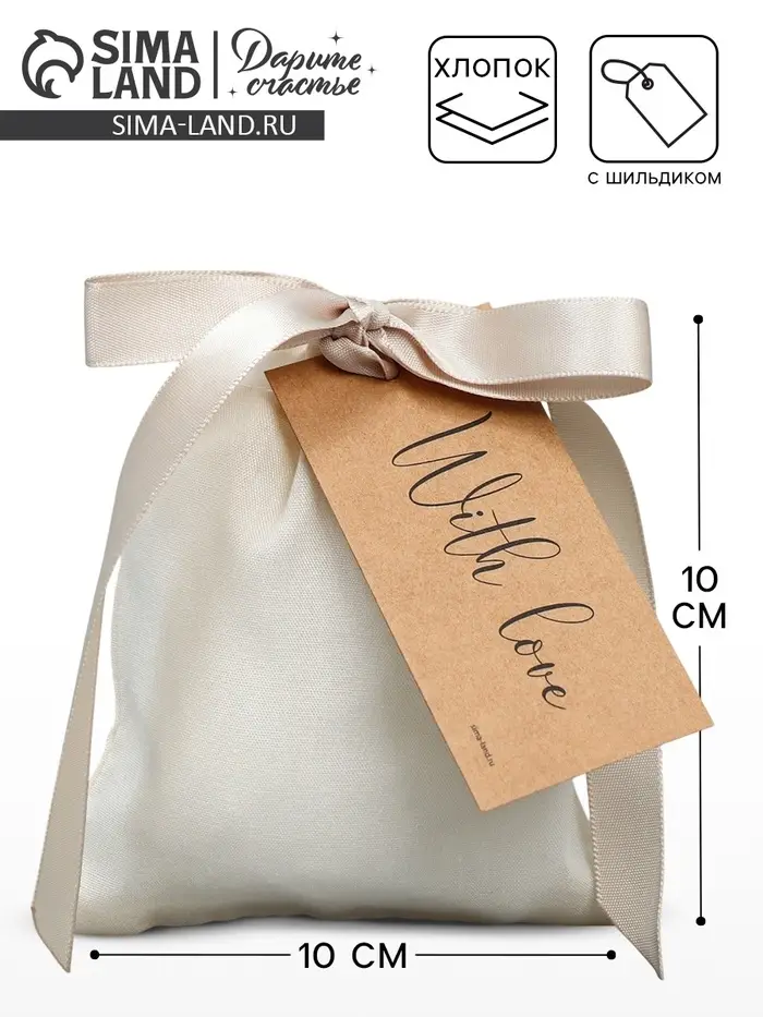 Мешочек подарочный из хлопка «С любовью», 10 х 12 см +/- 1.5 см