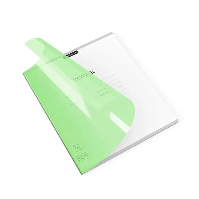 Тетрадь 12 листов в линейку ErichKrause «Классика CoverPrо Neon», пластиковая обложка, блок офсет, белизна 100%, зелёная