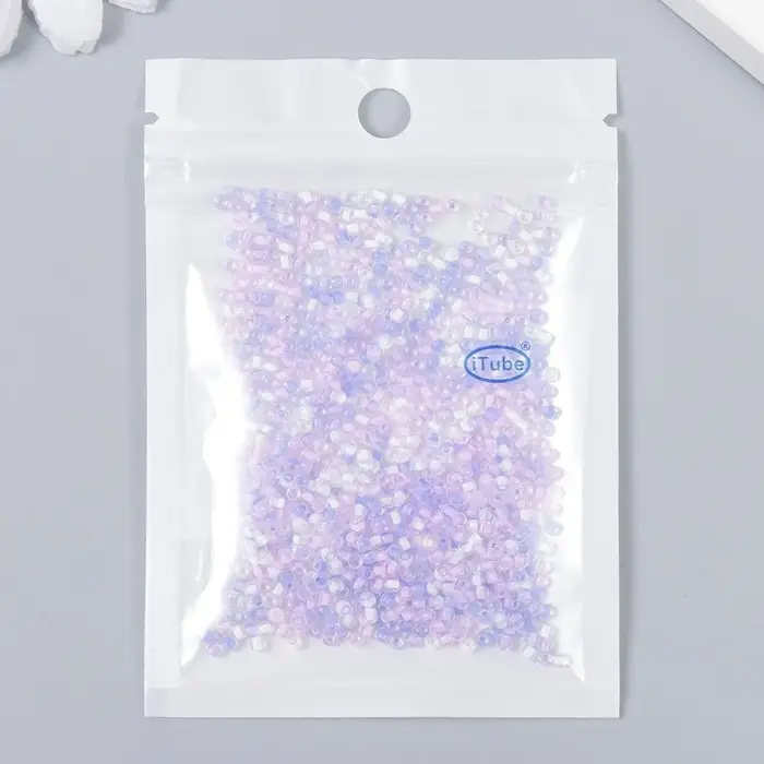 Бисер стекло 12/0 "Прозрачный. Цветная серединка. Сиреневый" 10 гр