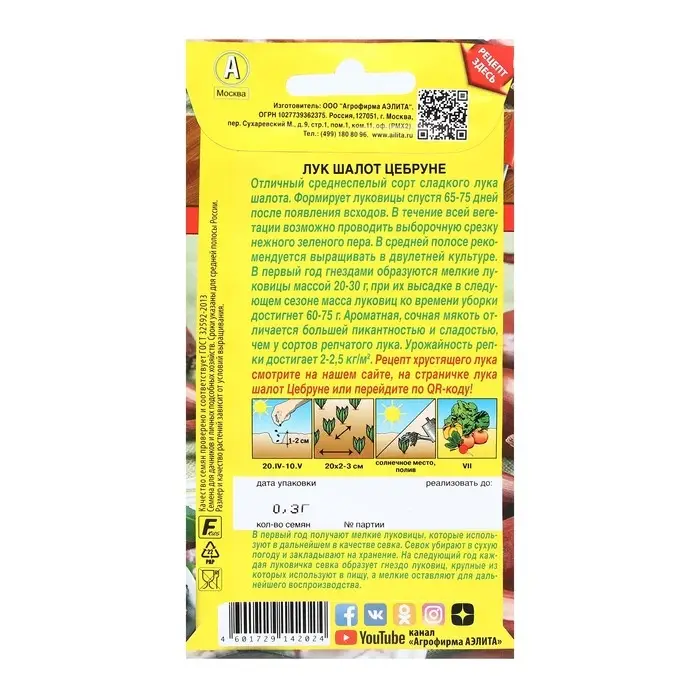 Отличный среднеспелый сорт сладкого лука шалота.Формирует луковицы спустя 65-75 дней после появления всходов. В течение всей вегетации возможно проводить выборочную срезку нежного зеленого пера. В средней полосе рекомендуется выращивать в двулетней культуре. В первый год гнездами образуются мелкие луковицы массой 20-30 г, при их высадке в следующем сезоне масса луковиц ко времени уборки достигнет 60-75 г. Ароматная, сочная мякоть отличается большей пикантностью и сладостью, чем у сортов репчатого лука. Урожайность репки достигает 2-2,5 кг/м2.В первый год получают мелкие луковицы, которые используют в дальнейшем в качестве севка. Севок убирают в сухую погоду и закладывают на хранение. На следующий год каждая луковичка севка образует гнездо луковиц, крупные из которых используют в пищу, а мелкие оставляют для дальнейшего воспроизводства.