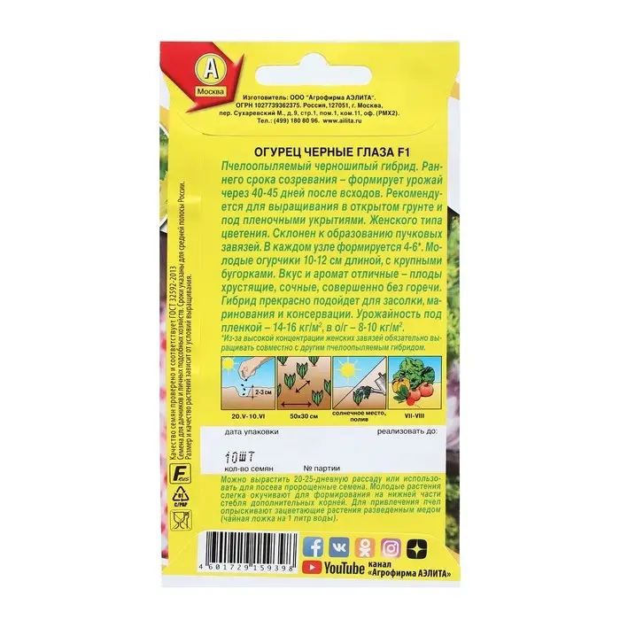 Семена Огурец "Черные глаза", F1, 10 шт