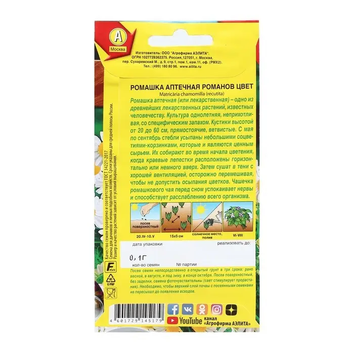 Семена Ромашка аптечная "Романов цвет", Целебный чай, 0,1 г