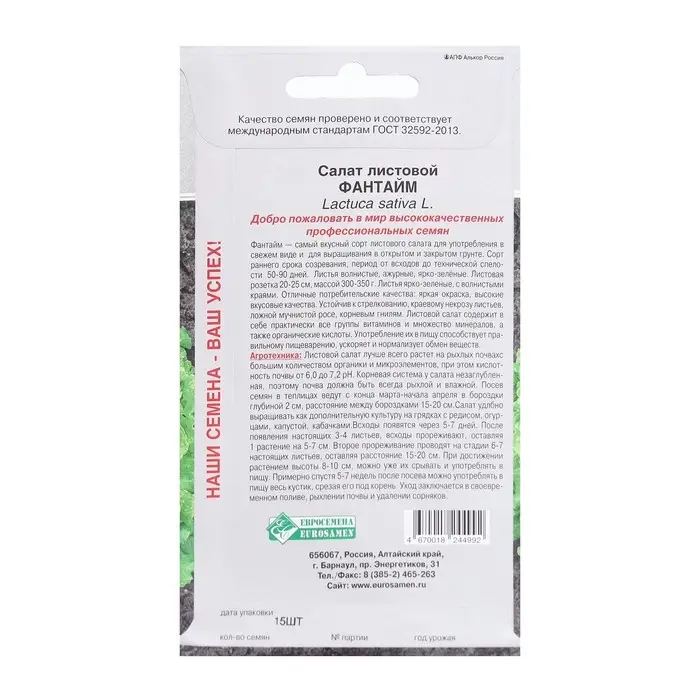 Фантайм — самый вкусный сорт листового салата для употребления в свежем виде и для выращивания в открытом и закрытом грунте. Сорт раннего срока созревания, период от всходов до технической спелости 50-90 дней.