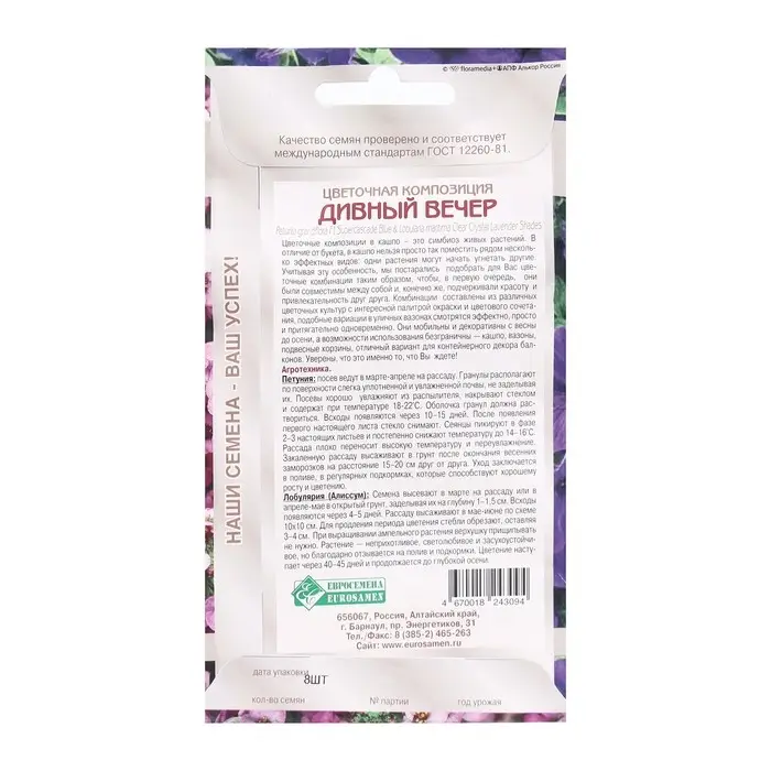 Семена Цветов Цветочная композиция Дивный Вечер, 8 драже