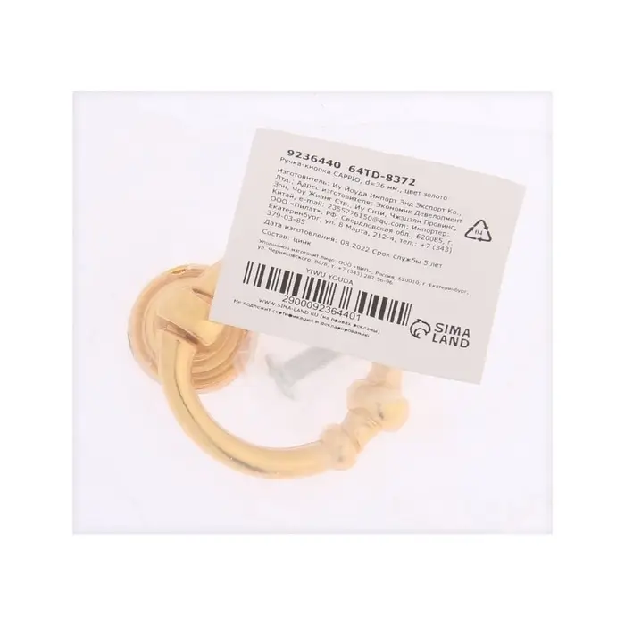 Ручка-кнопка CAPPIO, d=36 мм, цвет золото