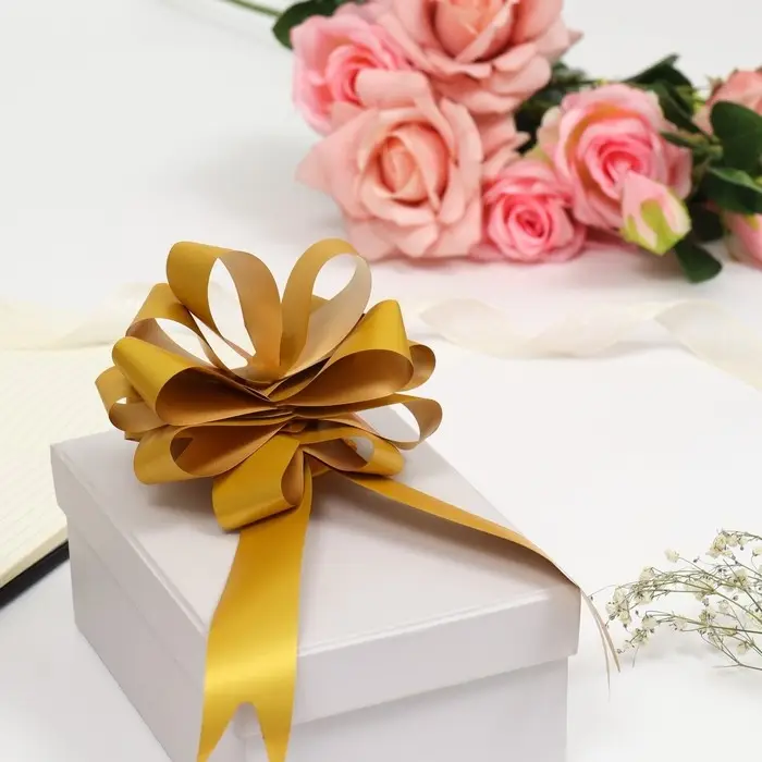 Очень красивый блестящий бант прекрасно украсит любую подарочную коробку. Поставляется в плоском виде - вам нужно просто потянуть за узкие ленты и роскошный блестящий бант готов! Выбирайте любой нужный цвет! Подойдет на любой подарок мужчине на 23 февраля или подарок любимой женщине на 8 марта. Ребенку, сыну или дочери на день рождения или юбилей.