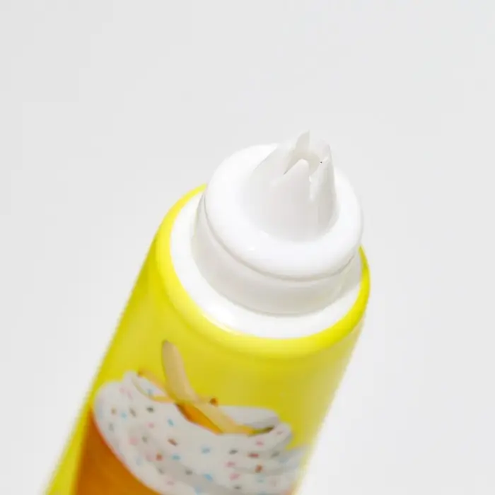 Состав: вода, глицерин, минеральное масло, диметикон, полиакриламид, изопарафин C13-14, лаурет-7, карбомер, триэтаноламин, метилпарабен, пропилпарабен, ароматизаторы банана и мороженого.