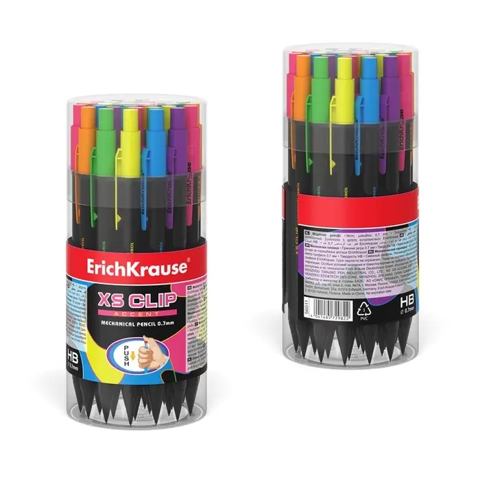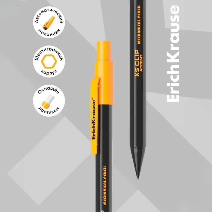Карандаш механический с ластиком ErichKrause «XS Clip Accent», 0.7 мм, НВ, в коробке, МИКС