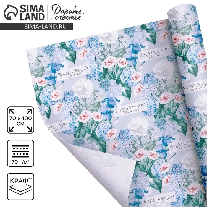 Бумага упаковочная крафтовая «Гортензия», 70 х 100 см