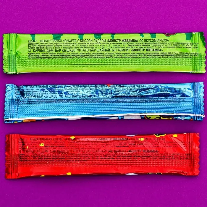 Погружайтесь в мир ярких вкусов с жевательной конфетой "Монстр Жевамба" ассорти и наслаждайтесь каждой жевательной минутой.