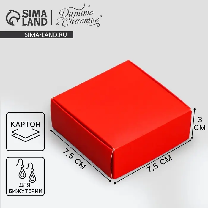 Коробка подарочная под бижутерию двухсторонняя, упаковка, «Красная», 7.5 х 7.5 х 3 см
