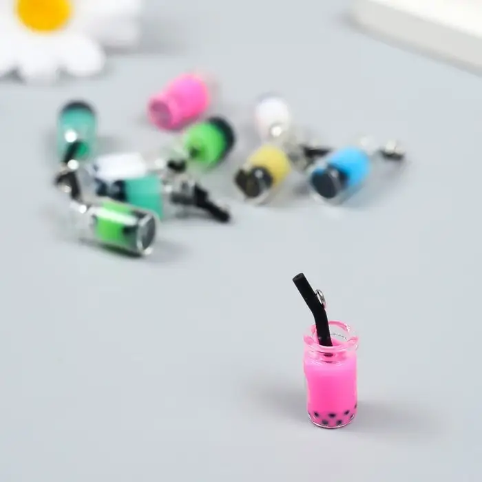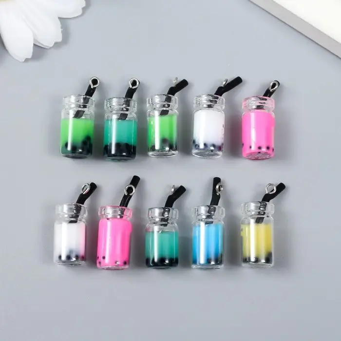 Декор для творчества стекло, пластик "Баночка со смузи с петелькой" МИКС 1х1х2,4 см