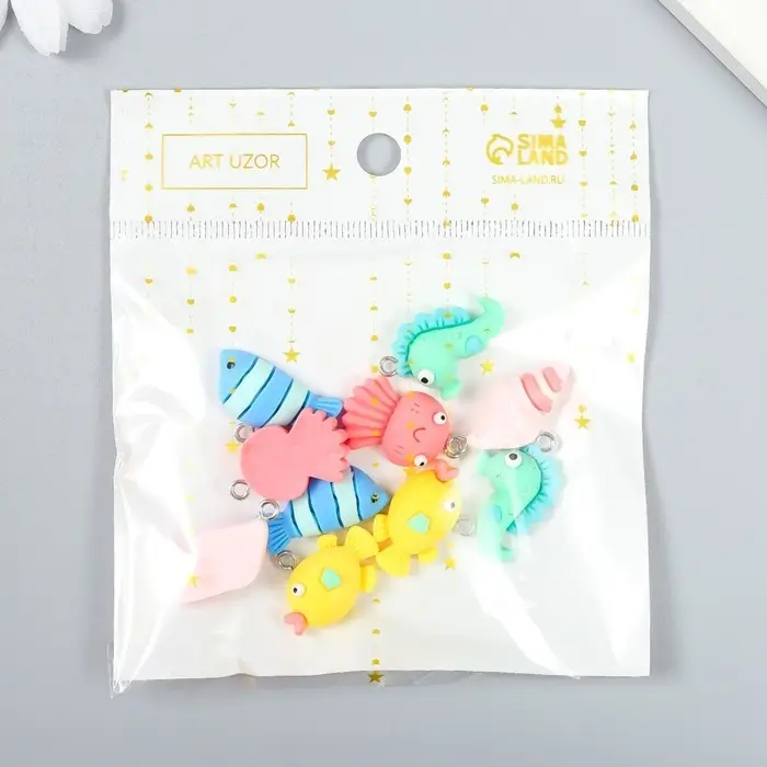 Декор для творчества пластик "Подводный мир с петелькой" МИКС 0,7х1,4х2,1 см