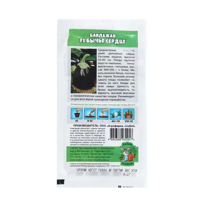 Семена Баклажан "Алёшка", F1, скороспелый, 0,05 г