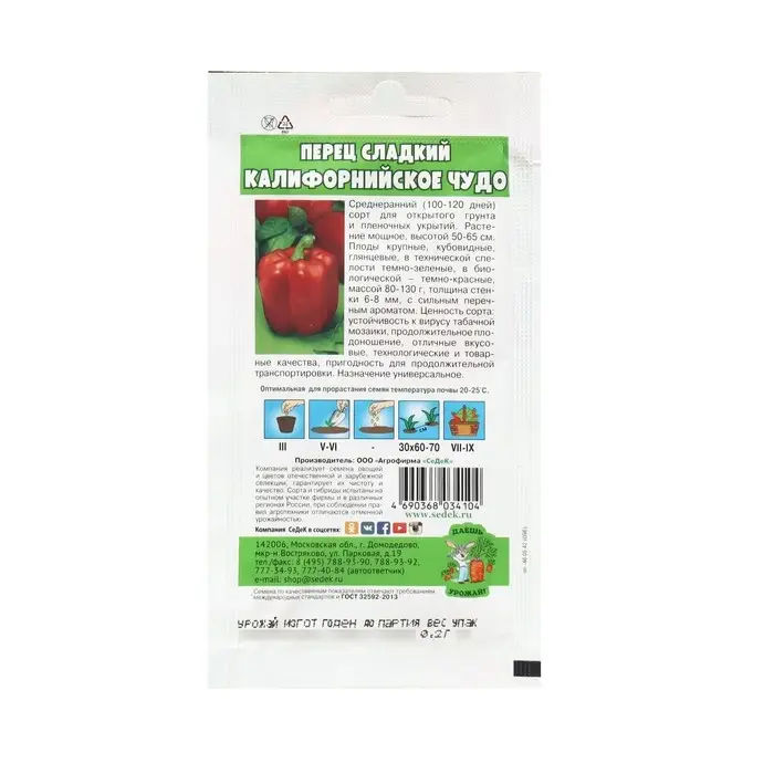 Семена Перец сладкий "Калифорнийское Чудо "0.2 г