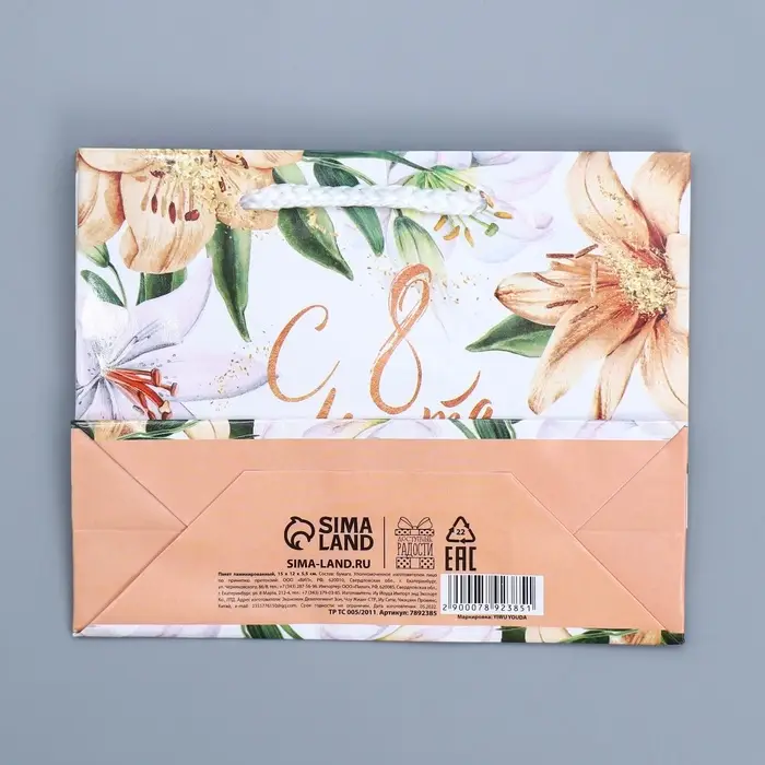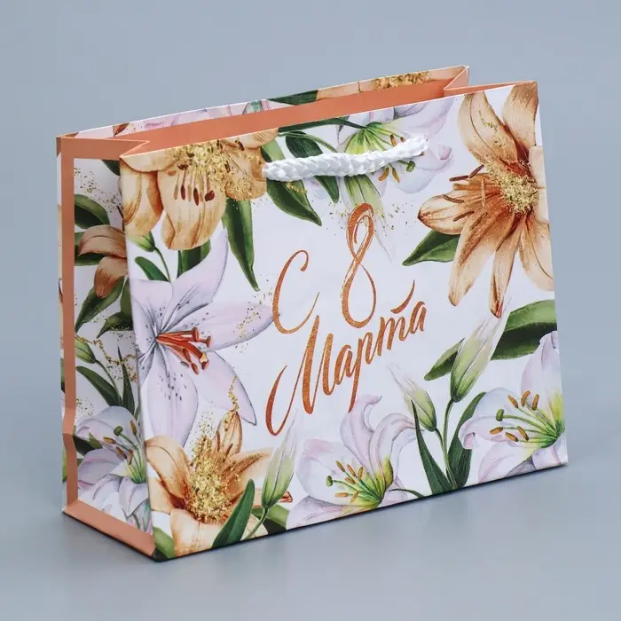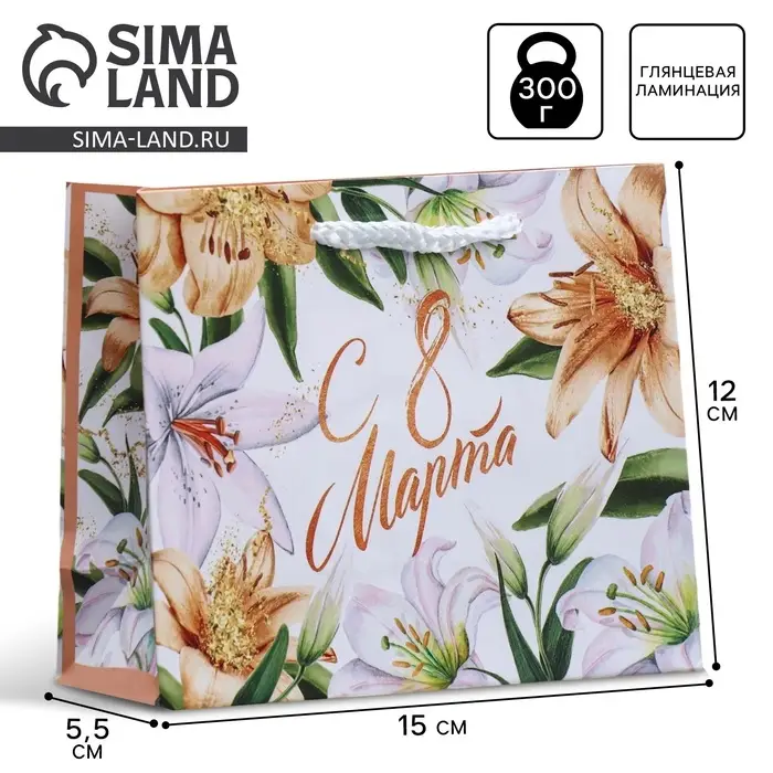 Пакет подарочный ламинированный, упаковка, «8 марта», S 12 х 15 х 5.5 см