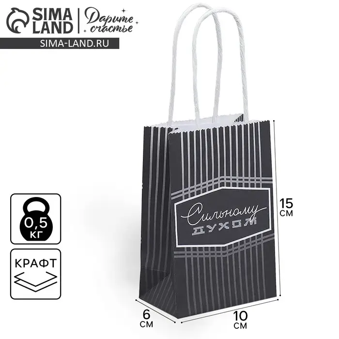 Пакет подарочный крафтовый, упаковка, «Сильному духом», 15 х 10 х 6 см
