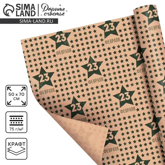 Бумага упаковочная крафтовая «Звёзды», 23 февраля, 50 х 70 см