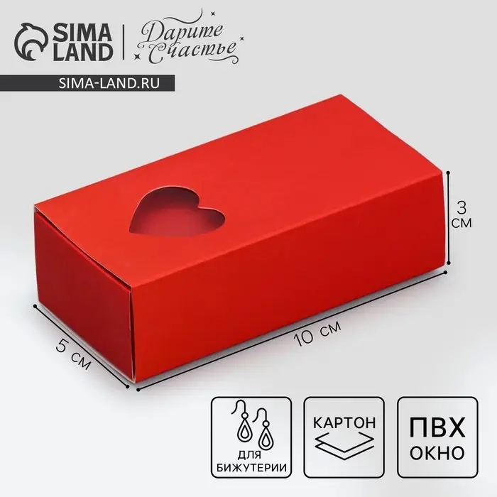 Коробка под бижутерию, упаковка, «Красная», 10 х 5 х 3 см