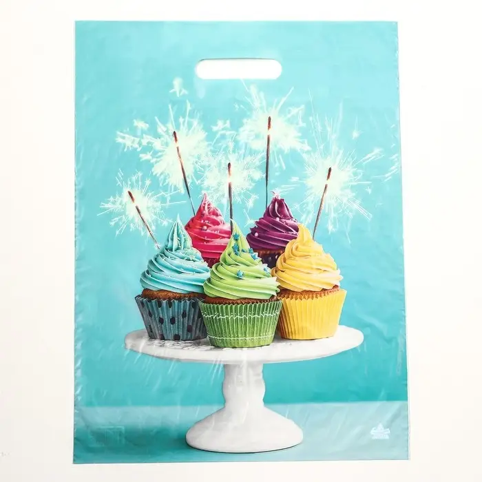 Пакет полиэтиленовый с вырубной ручкой, прочный с оригинальным рисунком.