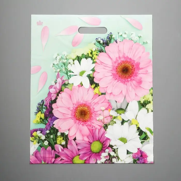 Пакет «Цветы» полиэтиленовый, с вырубной ручкой, 38×45 см, 60 мкм