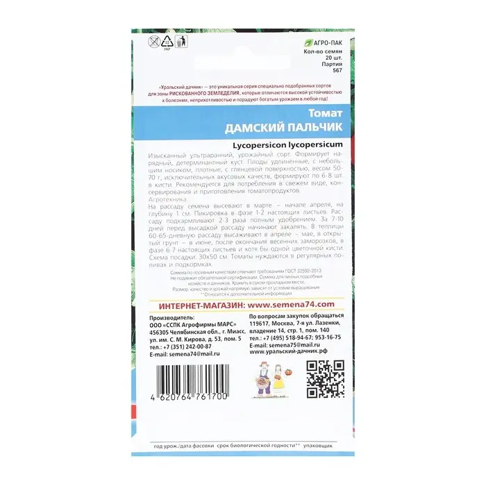 Семена Томат "Дамский Пальчик", детерминантный 20 шт
