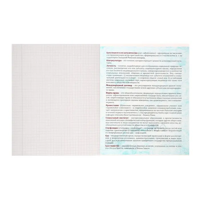 Тетрадь предметная Calligrata "Животные мемы", 36 листов в клетку Обществознание, со справочным материалом, обложка мелованная бумага, блок №2 (серые листы)