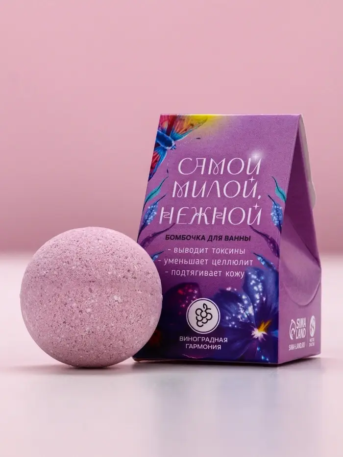 Бомбочка для ванны «Самой милой, нежной», 40 г, аромат винограда, Чистое счастье