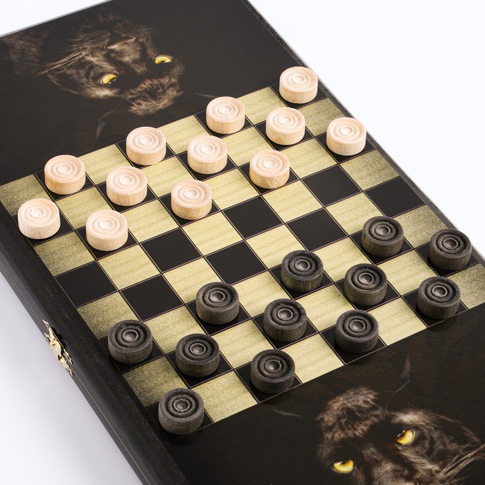 Нарды деревянные большие, настольная игра "Пантера", 40 x 40 см, с полем для игры в шашки
