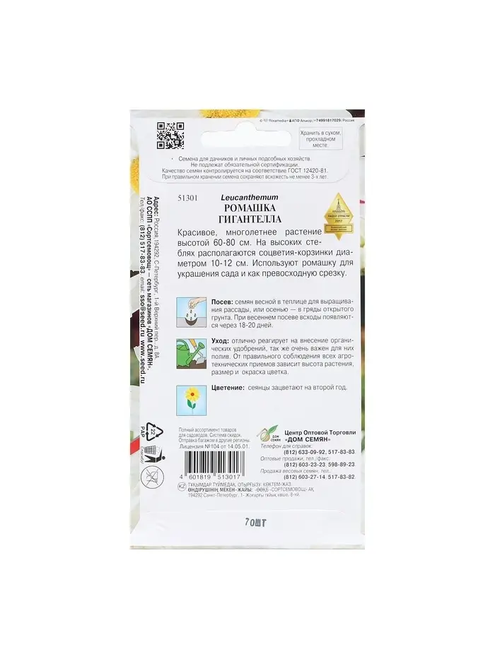 Семена цветов Ромашка "Аляска", 70 шт.