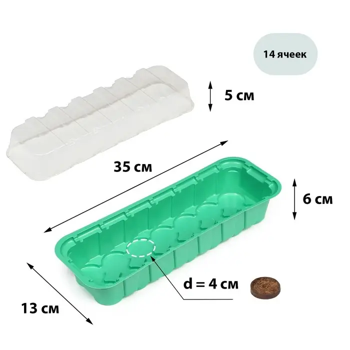 - Благодаря прозрачной крышке создаёт парниковый эффект, тем самым сохраняет необходимую влажность и температуру для саженцев.