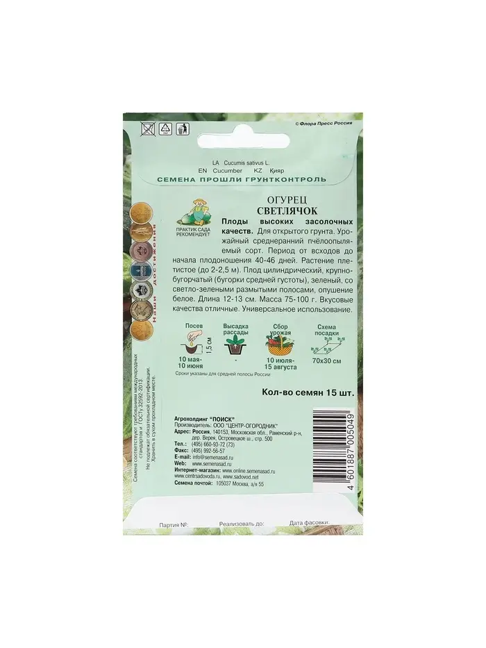 Семена Огурец "Сибирская Гирлянда" F1 скороспелый, партенокарпический, 5 шт