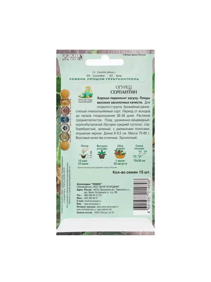 Семена Огурец "Серпантин" 15 шт