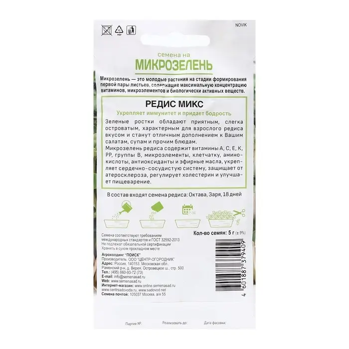 Семена Микрозелень Редис микс, 5 г