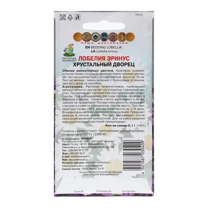 Семена цветов Лобелия эринус "Хрустальный дворец" 0,1 г