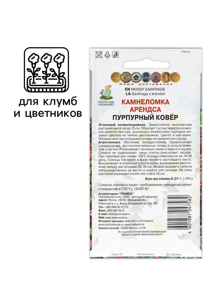 Семена цветов Камнеломка "Арендса Флорал карпет" 0,01 г