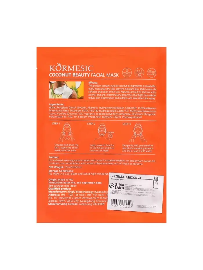 Способ применения: тщательно очистите кожу лица. Наложите маску на лицо и оставьте на 15-20 минут. Снимите маску, остатки смойте тёплой водой, либо распределите массажными движениями по лицу. Рекомендуется использовать 2-3 раза в неделю.