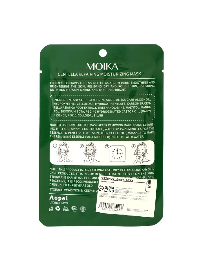 Маска тканевая увлажняющая для лица с экстрактом центеллы микс