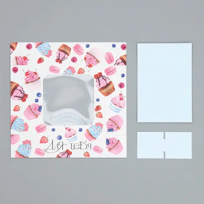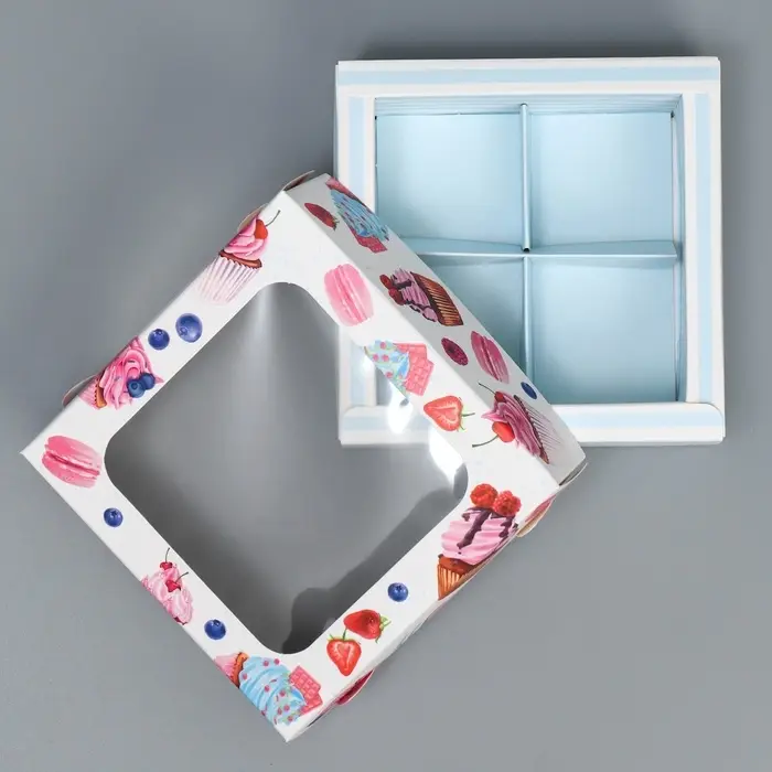 Коробка для 8 конфет + шоколад, с окном "Презент", 17,7 х 17,8 х 3,8 см. Кондитерская упаковка