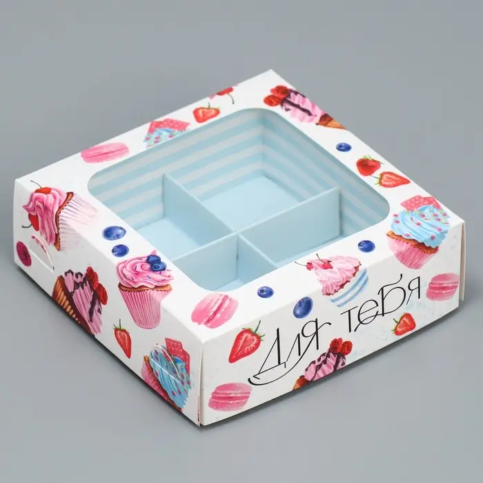 Коробка для конфет, кондитерская упаковка, 4 ячейки, «Для тебя», 10.5 х 10.5 х 3.5 см