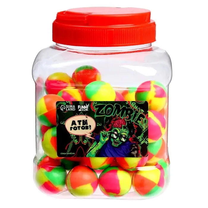 Маленький мяч для больших развлечений! Каучуковые попрыгунчики «Зомби» в банке — это яркие и упругие шарики, которые подарят радость детям и взрослым. Идеальный выбор для активных игр и хорошего настроения.