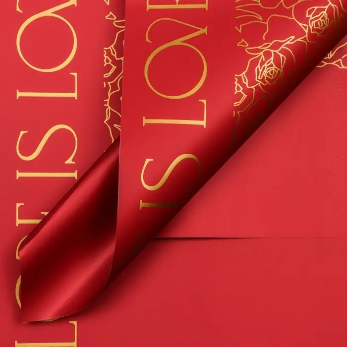 Пленка для цветов матовая, «Любовь и розы», 57×57 см, красный