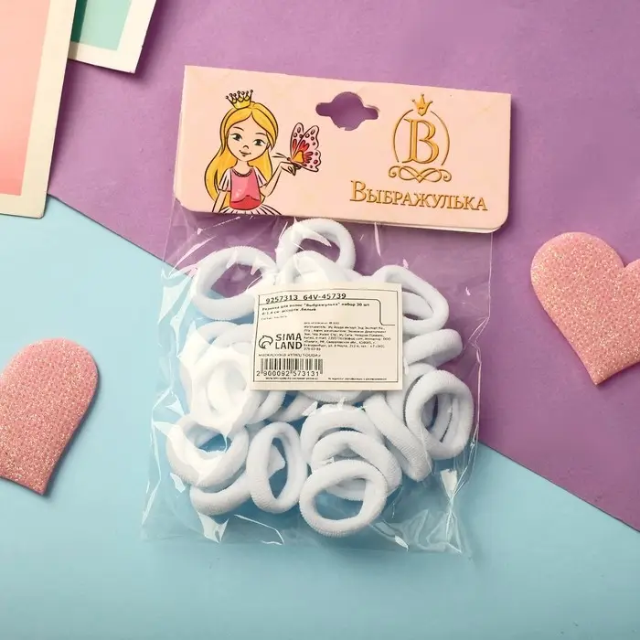 Резинка для волос «Выбражулька» (набор 30+-1 шт) d-1,4 см ассорти, белый