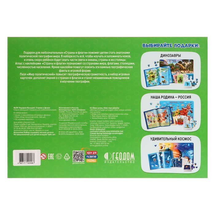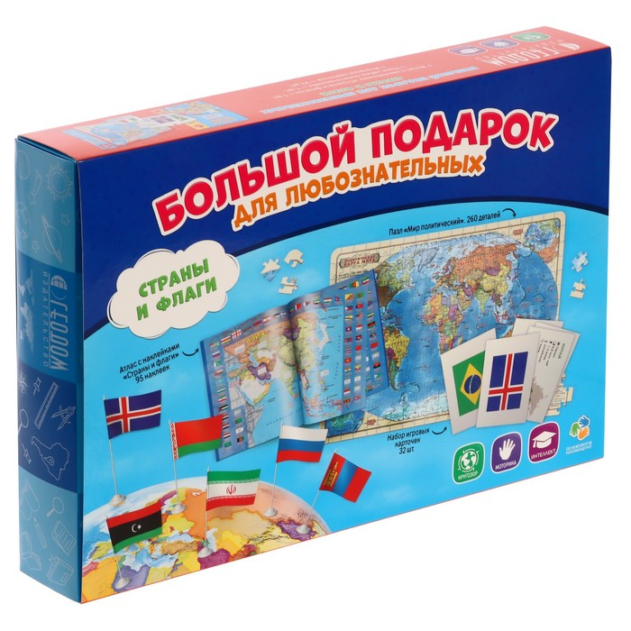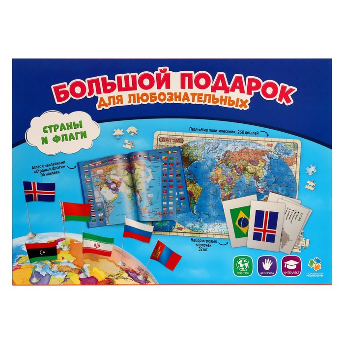 Подарок большой «Страны и флаги», пазл 260 деталей, атлас с наклейками + карточки