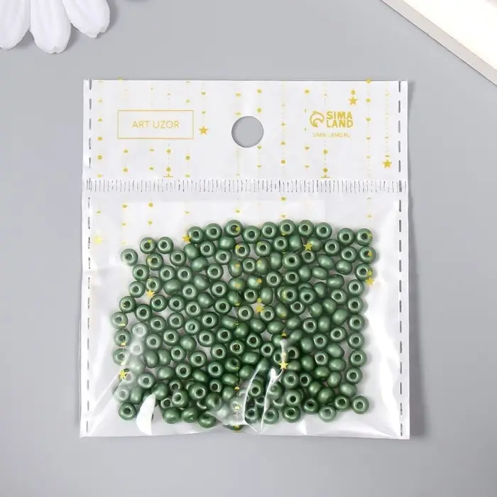 Бисер стекло 6/0 "Платиново-зелёный" 15 гр