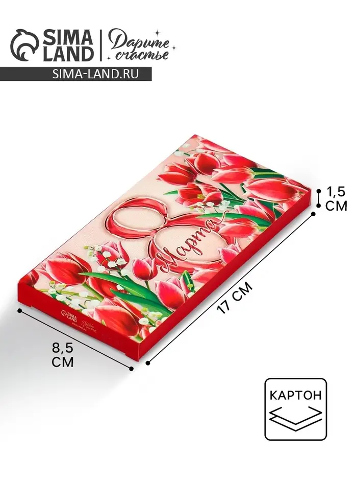 Коробка для шоколада, кондитерская упаковка, «8 Марта», 17.3 х 8.8 х 1.5 см